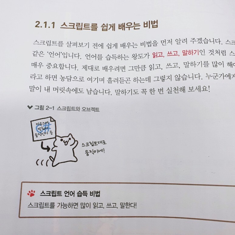 이 책의 2장은 C# 스크립트를 다룹니다. 여느 유니티 입문서적에서도 C# 파트를 큰 분량을 할애해서 다룹니다만, 이 책은 앞서 이야기 했던 방향을 유지하면서 게임 제작에 필요한 부분에 좀 더 집중해서 최대한 쉽게 설명합니다.