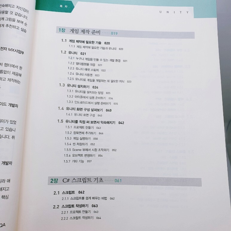 목차를 보면, 이 책이 단순 유니티 입문 서적이 아니라 얼마나 게임 제작 입문서에 진심인지 알 수 있습니다.