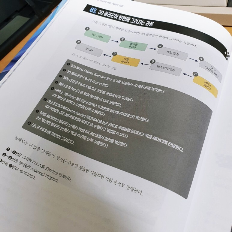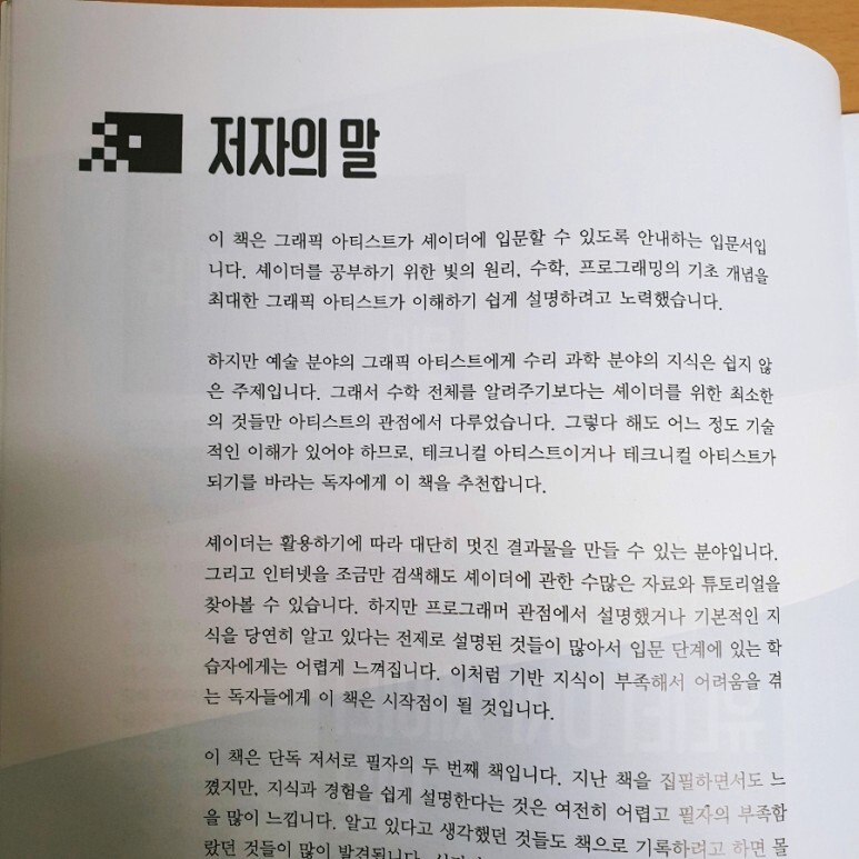 입문책들은 상호 보완적인 성격이 있어서 여러 권 읽을수록 몰랐던 기본기나 비어있던 부분을 채워서 더 탄탄하게 다져지는데, 또 훌륭한 셰이더 입문책이 나와서 기쁜 마음으로 읽어봤습니다.