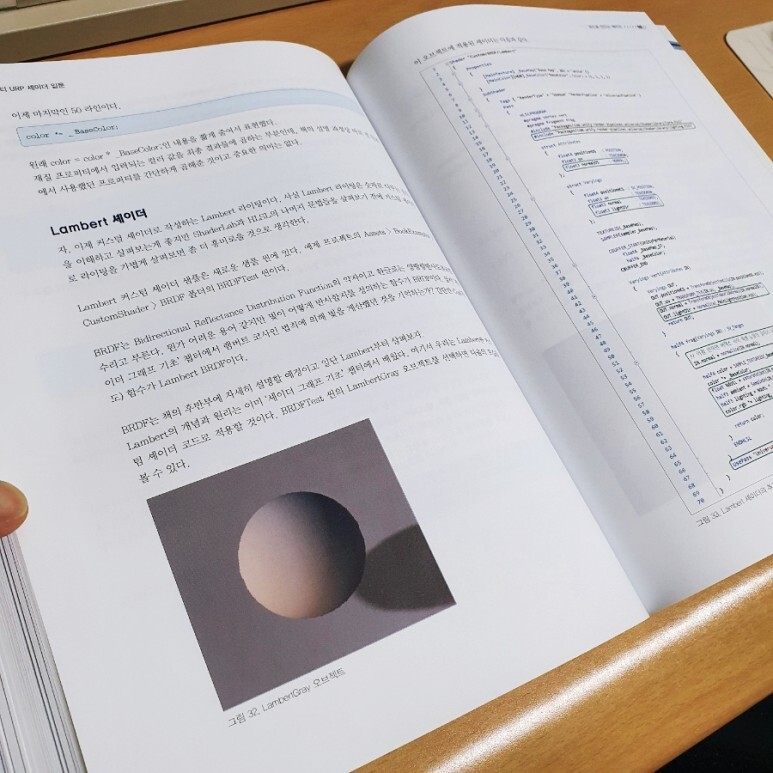 실제로 셰이더 코드 챕터는 이 책의 20~25% 분량만 차지하고 있지만 그만큼 꼭 필요한 부분과 실습 요소만 다루고 있는 것 같습니다. 셰이더 그래프 챕터에서 다루었던 램버트 셰이더 코드도 다시 한 번 다루면서 직접 빛이 물체에 닿아 그림자가 지는 셰이더를 짜보고 분석해볼 수 있도록 가이드 합니다.
