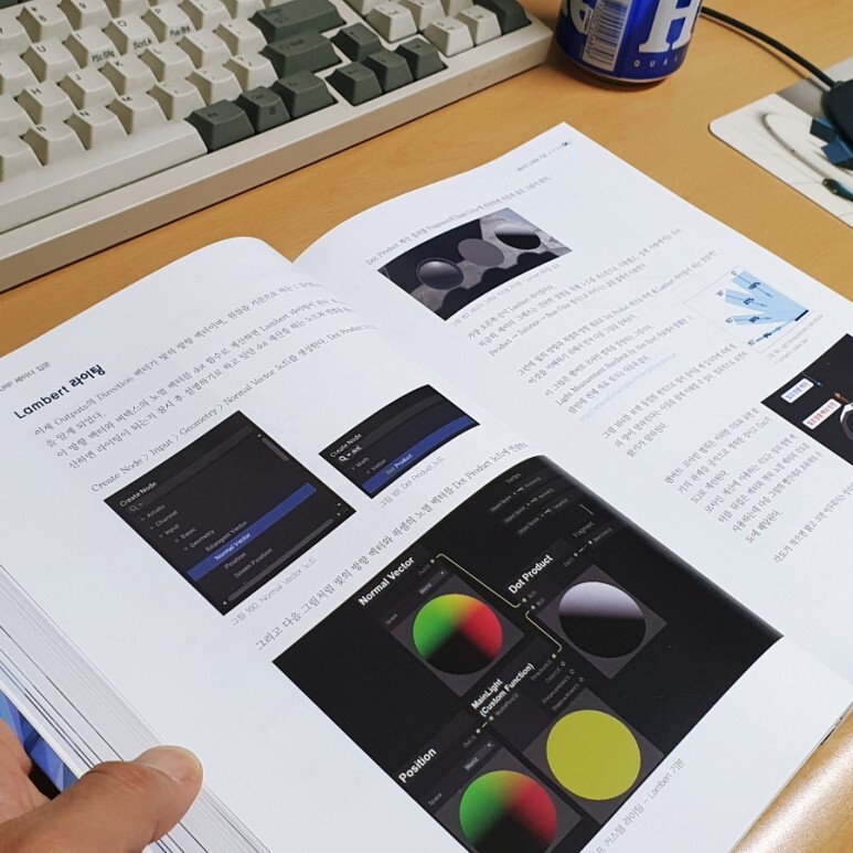 물체의 그림자 표현을 다루는 램버트 라이팅을 셰이더 그래프로 직접 만들어보며 학습할 수 있는 파트도 있습니다. 뒤에서는 이 램버트 라이팅을 직접 셰이더 코드로도 다뤄보기 때문에 순서대로 학습할 수 있게 잘 구성된 책입니다.