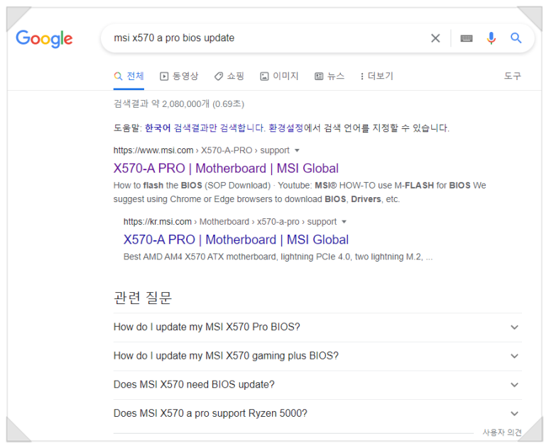 메인보드 BIOS 업데이트 (MSI X570 A PRO)