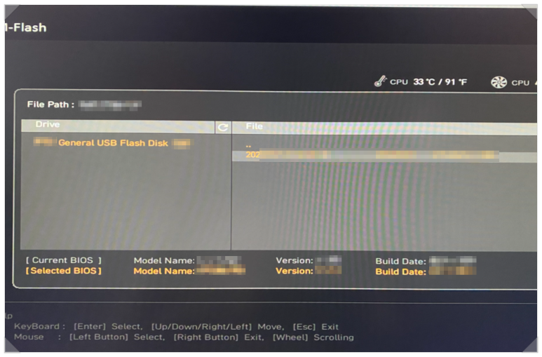 다시 재부팅을 하면 USB M-FLASH BIOS 로 진입하게 되고, USB 에 복사해둔 업데이트 패치 파일을 선택해서 업데이트를 진행해줍니다.