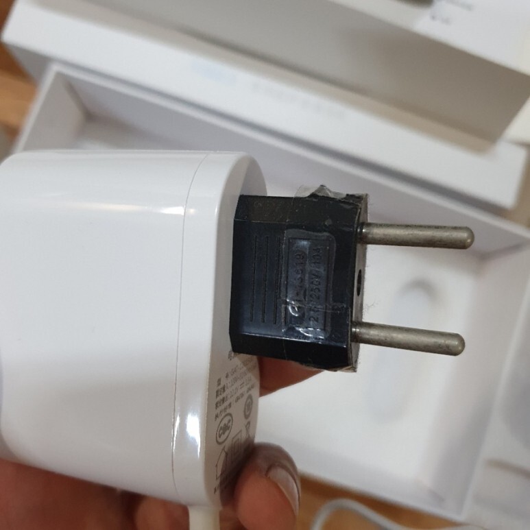 요것이 11자 어댑터. 입력 적압은 220~250V 까지 가능하니 국내 콘센트에도 그냥 젠더만 연결해서 꽂으면 됩니다.