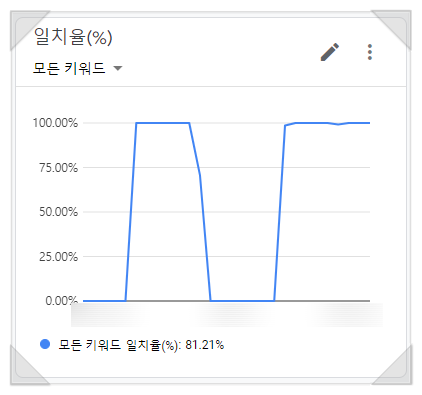 광고 일치율은 광고 요청 수 대비 실제 노출 수의 비율을 계산한 값입니다. 서비스를 시작하고 100%를 유지하다가 어느 순간 갑자기 0%로 내려앉더니 다시 회복이 된 모습. 중간에 푹 꺼져있는 7일 기간이 제 계정에 제재가 가해졌던 기간입니다.