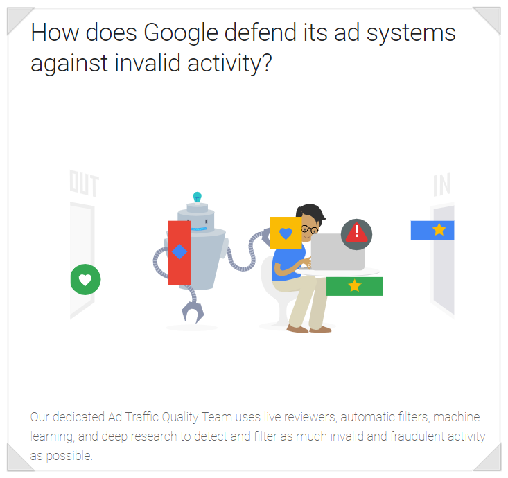 여기서 합리적으로 의심할 만한 것은, 자동화 모리터링과 탐지 부분일 것입니다. 수많은 광고 게시자들의 활동과 트래픽을 리뷰어들의 수작업만으로는 감지가 불가능할 것이기 때문에, 특정 패턴의 트래픽을 감지하고 가벼운 경고나 제재를 먼저 가한 뒤 지속적인 모니터링을 진행할 거라고 추측했습니다.