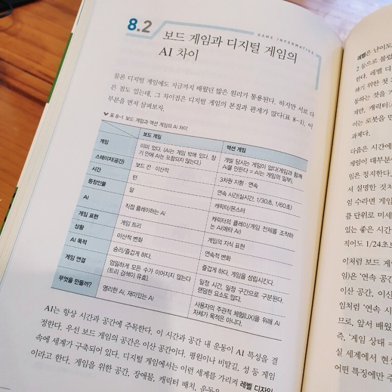 신경망과 머신러닝까지 최소 한 페이지씩은 모두 다루려고 노력한 구성입니다. 게임 AI에 대한 거의 대부분 영역을 총망라 하듯이 다루고 있기 때문에 이 책의 가치가 더 무거워지는 것 같습니다.