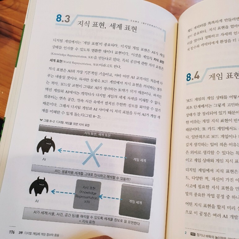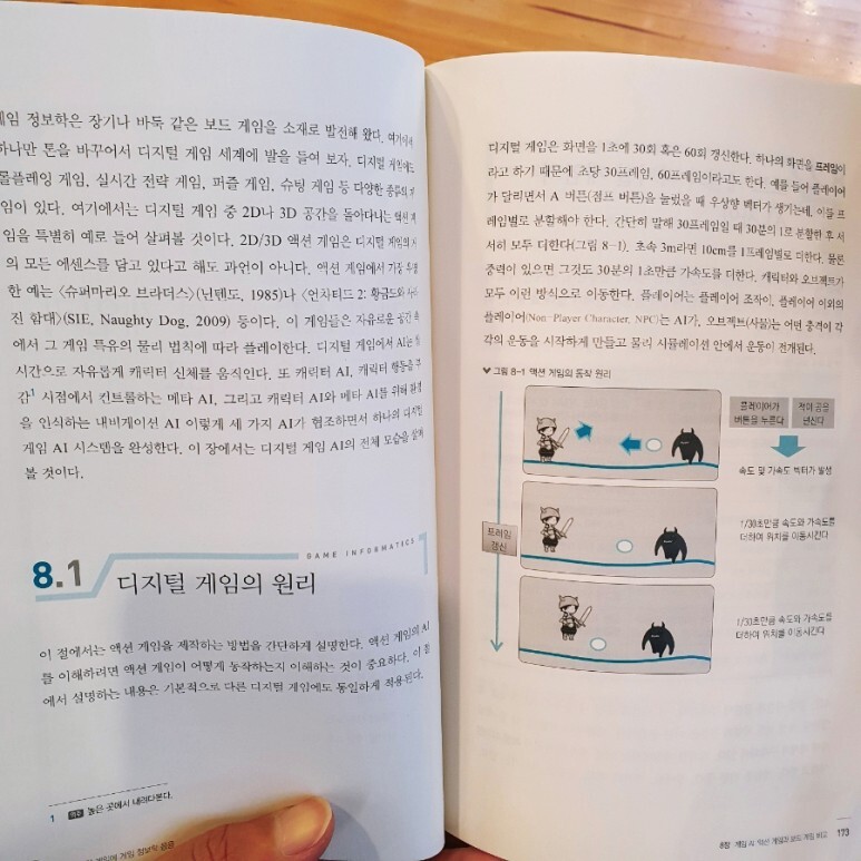 디지털 게임에서의 AI에 대한 특징을 설명하고, 디지털 게임 AI에 필요한 개념들을 차근차근 소개하고 설명합니다. 제가 개발에 참여하고 있는 게임에서도 AI 작업을 하고있기 때문에 공감되는 내용고, 참고가 되는 내용도 많아서 더 재밌었습니다.