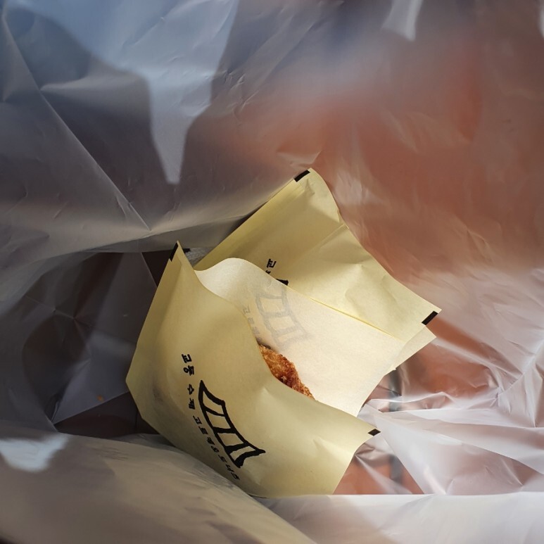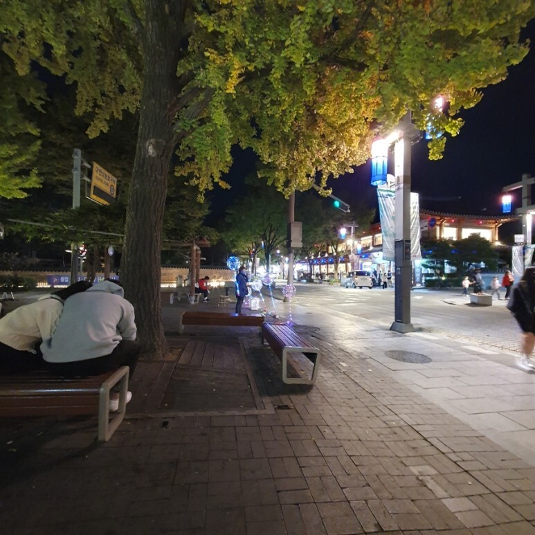 길거리에 벤치가 보여서 이곳에 앉아서 맛있게 먹었습니다. 야경 구경하며 한복입은 관광객들 구경하며 먹으니까 더 맛있었던 기억.