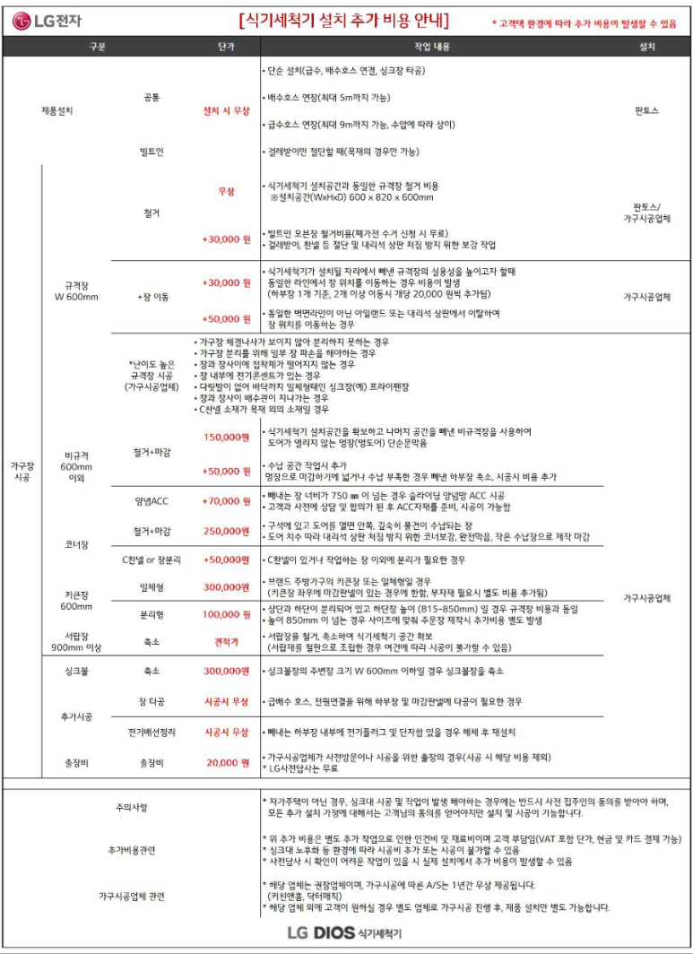 식기세척기 설치 과정 및 추가 요금