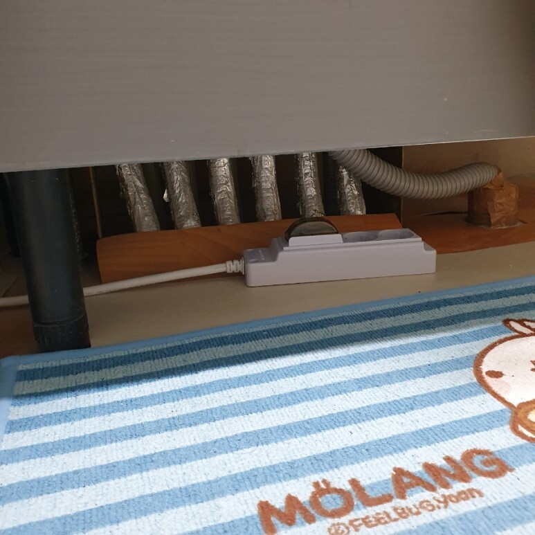 결과적으로는 위 사진과 같이 잘 해결했습니다. 하부장을 받칠 기둥은 기사님의 멋진 스킬과 서비스로 서랍장을 이동시켜서 깔끔하게 해결. 서랍장 이동 시공도 단순 이동이 아니라 고정 및 보강작업이 필요해서 추가 비용을 지불해야 하는 항목. 전원선 연결이 필요한 부분은 제가 미래를 예견하고(?) 미리 싱크대 아래에 넣어둔 대용량 멀티탭을 사용해서 해결했습니다. 결과적으로는 추가 비용을 많이 아낄 수 있었어요.