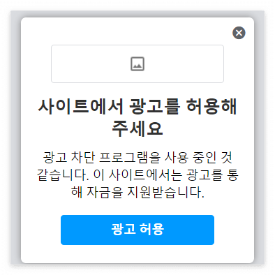 광고 차단 프로그램을 사용하는 경우 광고 허용 요청 팝업 띄우기