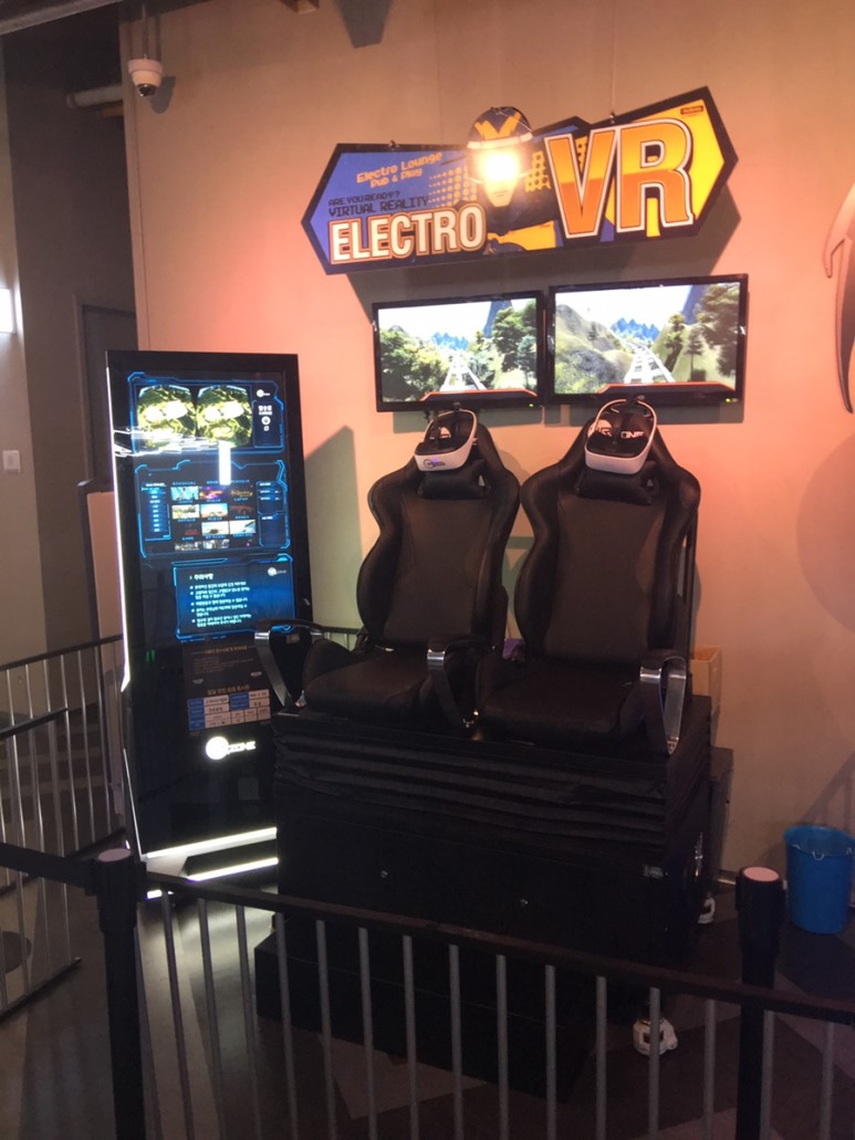 격렬하게 눌러야 하는 재밌는 컨트롤러의 게임기와 VR 체험기도 보입니다. VR 체험기는 너무 공개적인 디자인이라, 탑승하면 셀프 능욕 플레이가 되겠는데요.