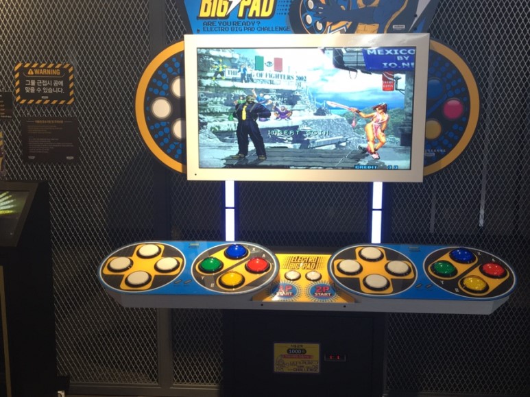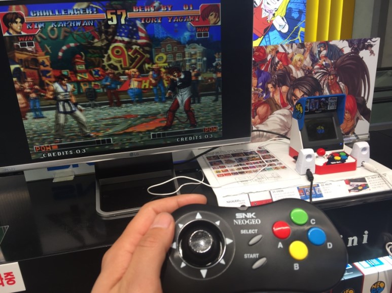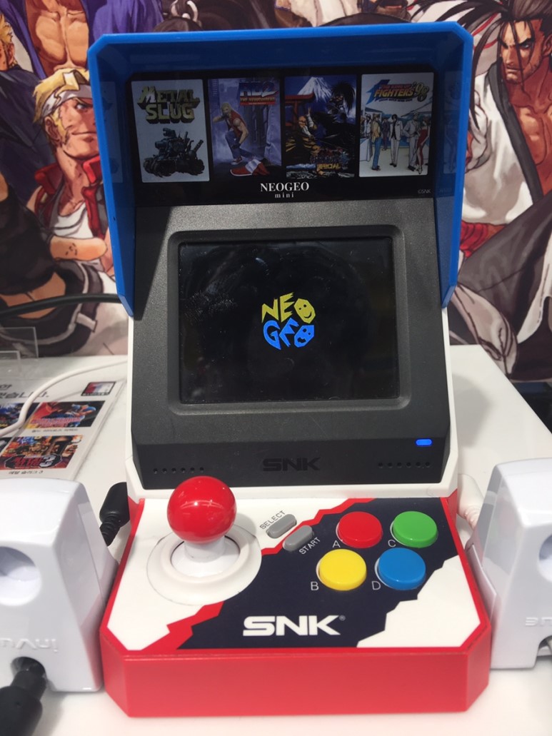 올라가자마자 본 네오지오 미니 게임기(?) 뭐라고 불러야 하나요 이거. 암튼, 작은 아케이드 게임기 디자인인데, 이 속에 SNK의 게임 소프트들이 임베디드 돼있는 모양입니다. 추억갬성 자극하는 패드로 한 게임 해줍니다. 그리고 졌습니다.