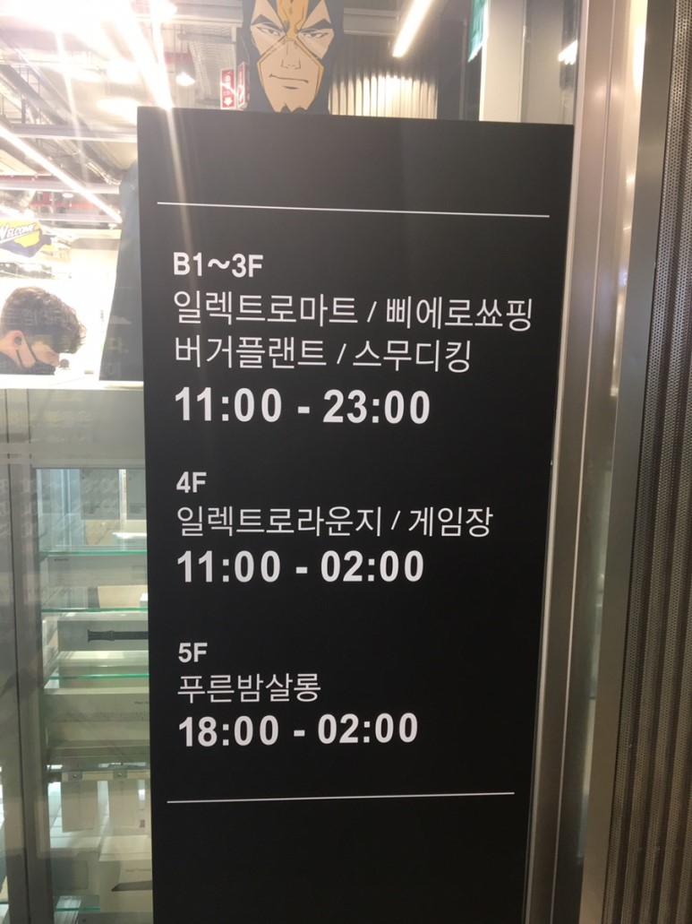 건물 1,2,3 층은 일렉트로마트. 지하는 피에로 쇼핑이라는 일본 돈키호테를 카피한 만물상점. 루프탑은 푸른밤이라는 술집이 있습니다. 저는 일렉트로마트만 고고. 시간이 남으면 다른 곳도 가보려고 했지만, 구경하느라 시간을 너무 써서 실패.