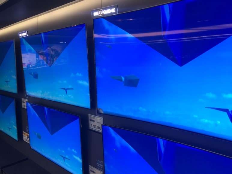 그 옆으론 4K TV들이 진열돼있습니다. 8K는 말이 필요 없을 정도로 훌륭했는데, 4K도 역시 훌륭합니다. 갖고 싶네요. 하루에 아주 많은 시간을 디스플레이를 보고 사는데, 이런 데 투자는 더 해도 되지 않나 싶습니다.