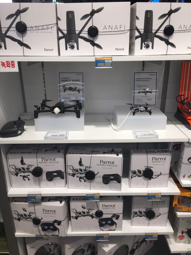 그 옆에는 드론 코너. 가격들이 만만치 않군요. 재미는 있어 보입니다. 나중에 돈은 많은데 취미가 필요할 때, 꼭 한 번은 취미 삼아 시도해보고 싶군요.