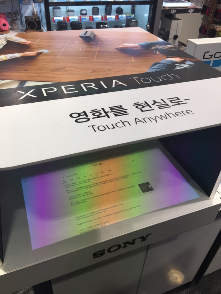 이거 신기합니다. 화면을 프로젝터로 쏘고, 손의 움직임을 센서로 인식해서 동작합니다. 싱기방기. 정말 말 그대로 영화에서 보던 인터페이스.