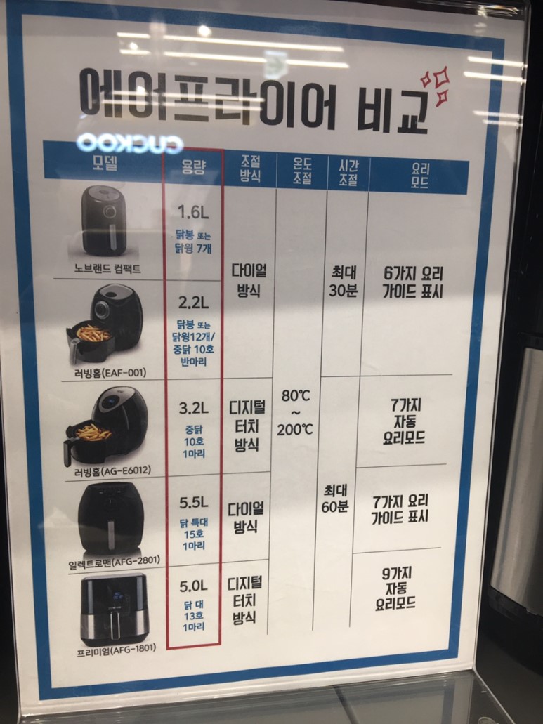 이곳 모델의 에어프라이어는 생각 못 해봤고, 크기만 보러 왔었는데, 다양하게 구경했습니다.