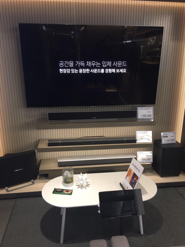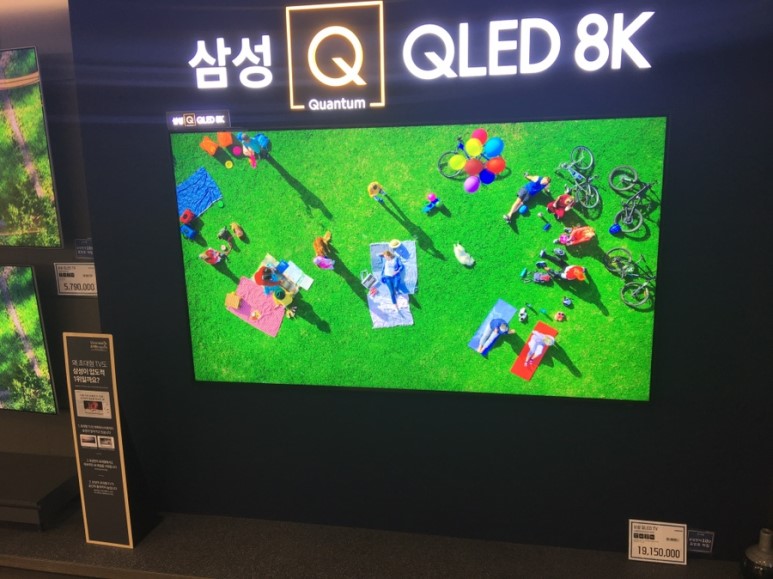 한 쪽 벽면에는 무려 8K TV가 전시돼있습니다.