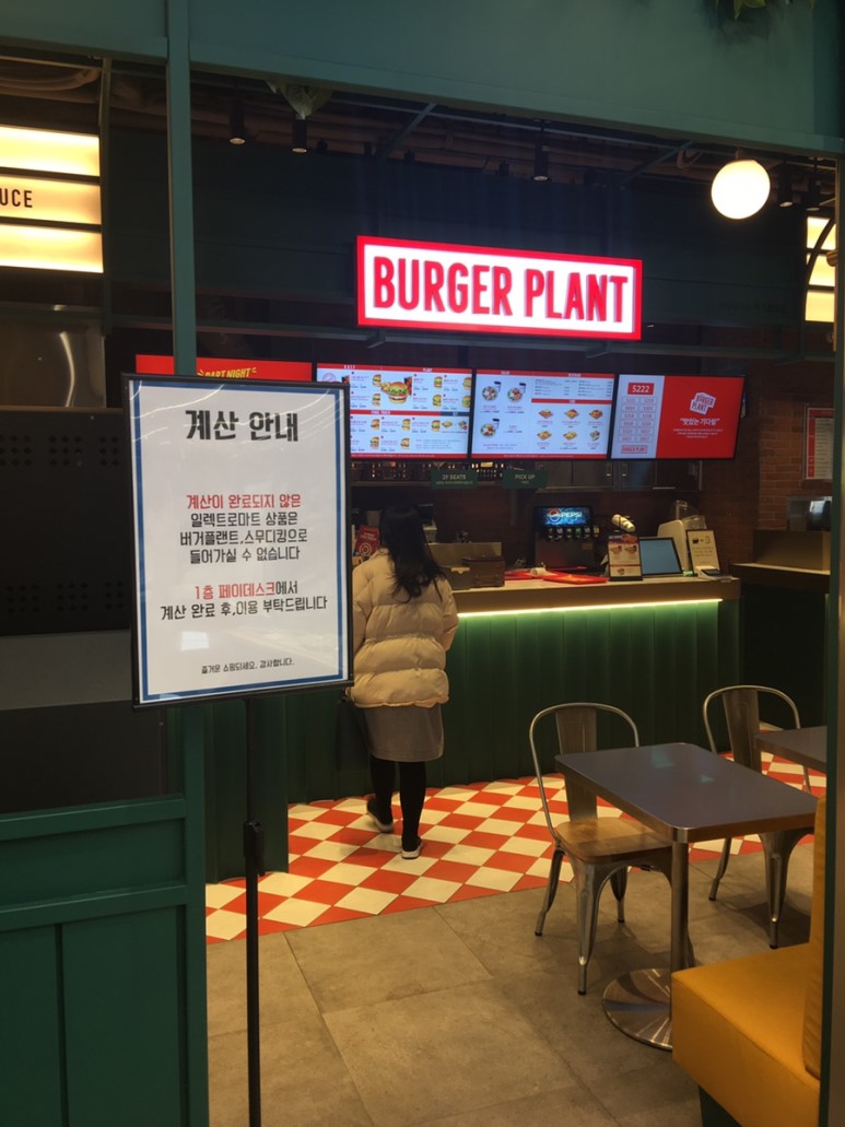 한 쪽에 매장을 운영 중인 BURGER PLANT. 쇼핑도 하고 배도 채우고. 한 건물에서 놀고먹고 쓰고 한 번에 해결할 수 있는 구성입니다.