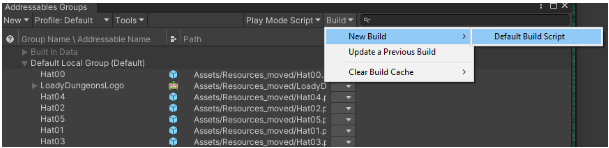 "Default Build Script"를 사용하여 어드레서블 콘텐츠 빌드하기