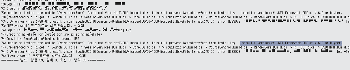 오랜시간 걸려서 엔진 빌드하는데, 아래와 같이 에러 발생.