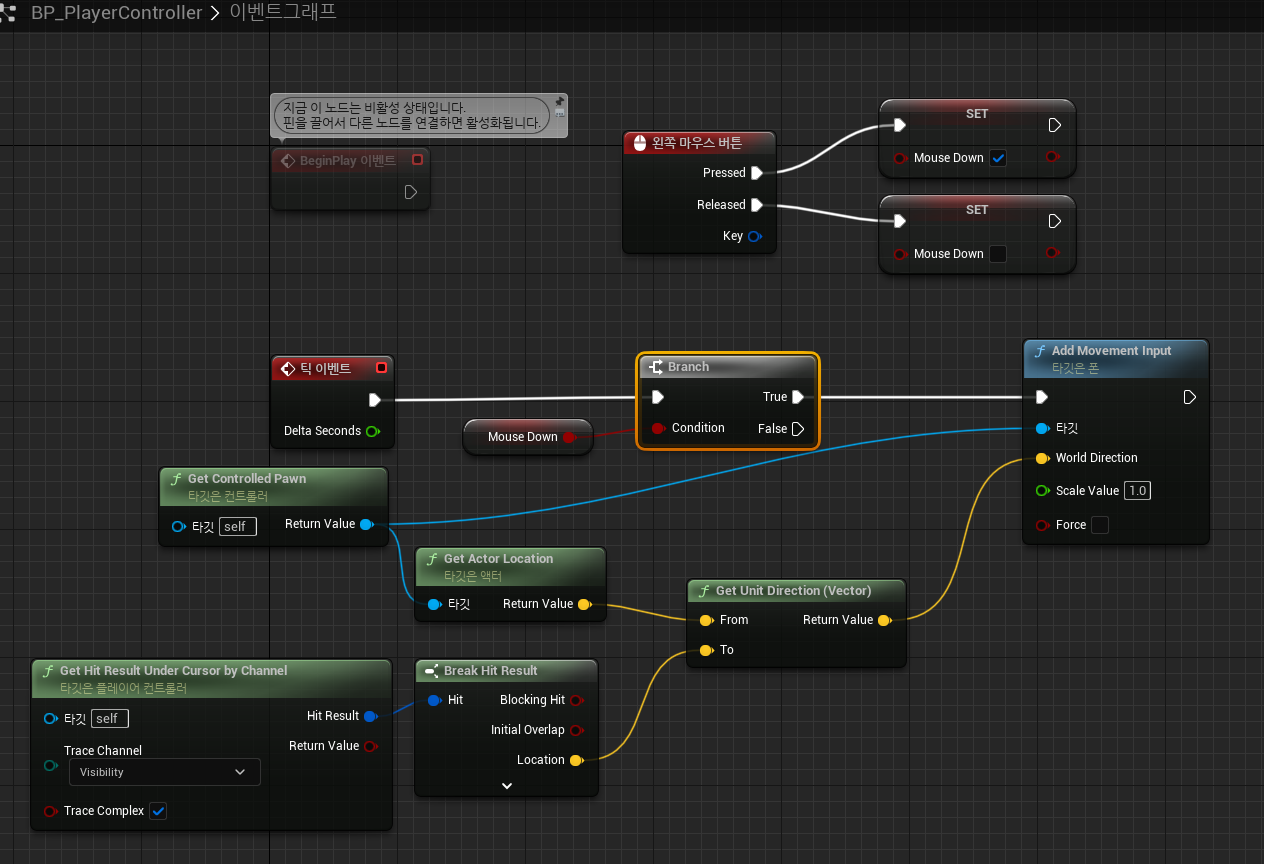 먼저 마우스 커서의 위치를 참조해서 Pawn이 움직이도록 만들어본다.