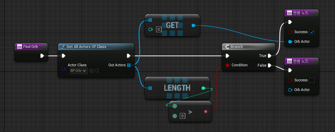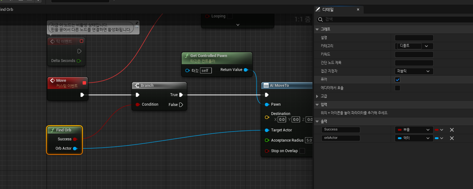 AIController 블루프린트에서 Orb를 찾는 함수를 만들어서 해당 위치를 목적지로 설정해준다.
