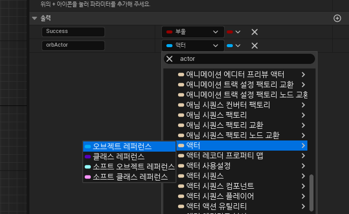 Actor 를 상속받는 블루프린트 클래스를 만들고, Orb 컴포넌트로 등록. 컬리전 프리셋으로 이동해서 Overlap Only Pawn 으로 설정.