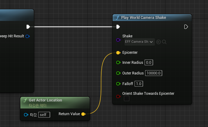 Epicenter(흔들리는 위치) 까지 연결하고 Outer Radius 는 매우 크게 설정. 월드 어디에 있든 흔들림 적용을 받도록.