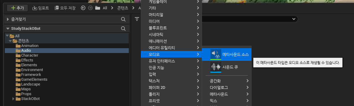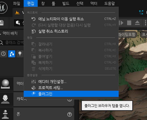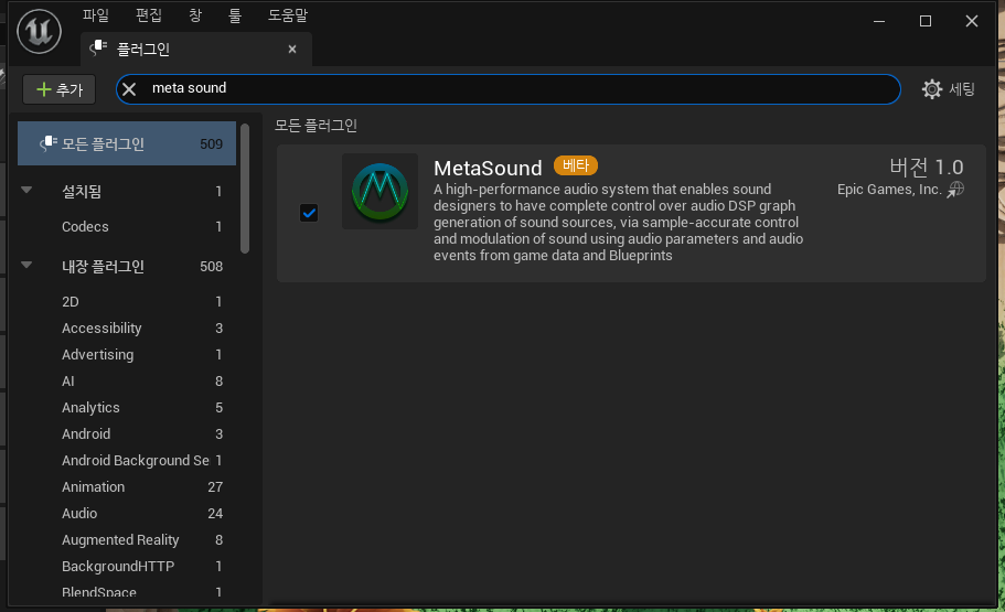 발소리를 만들어본다. 메타 사운드 플러그인을 활용한다. 메뉴 > Edit > Plugins 로 이동. 이미활성화 돼있으므로 무시.