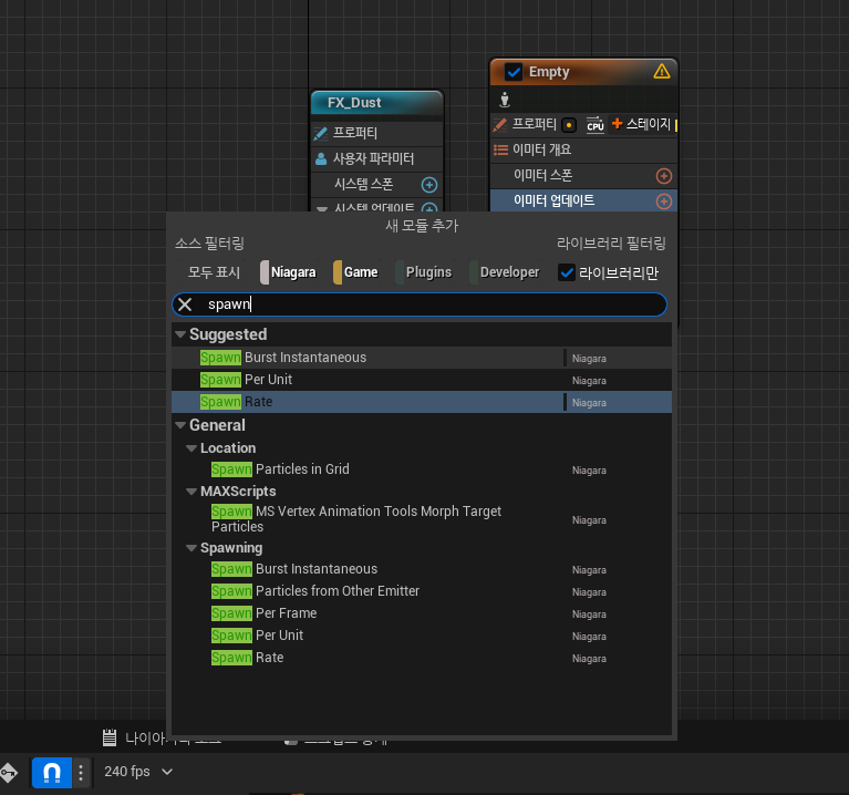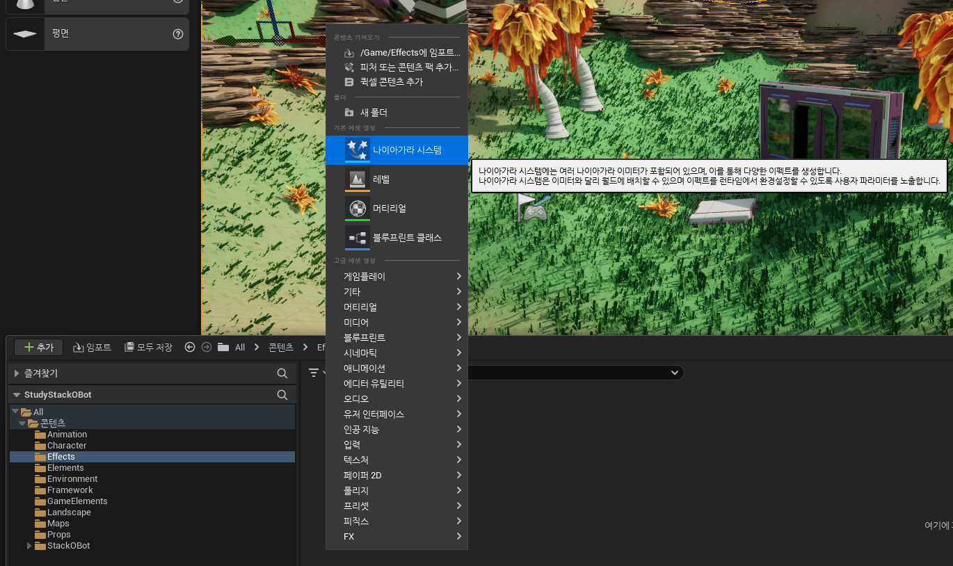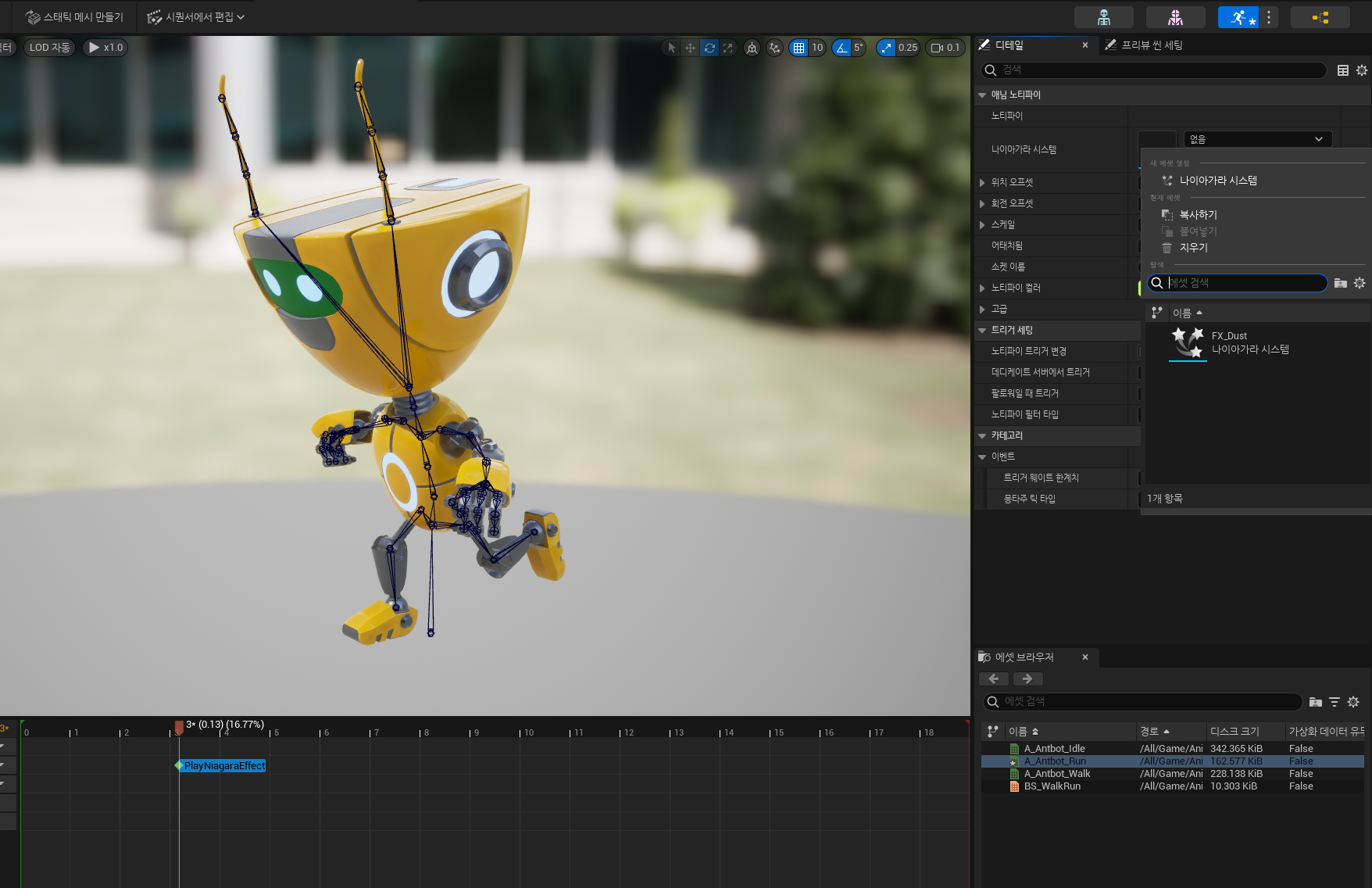 나이아라가를 이용해서 간단한 먼지 이펙트를 만들었고, 이제 이 이펙트를 어떻게 붙여서 사용하는지 진행.