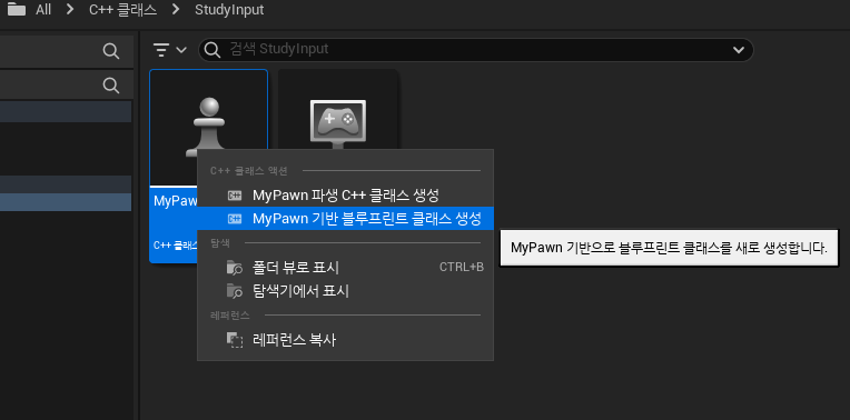 Pawn 을 부모클래스로 한 새 클래스를 생성.