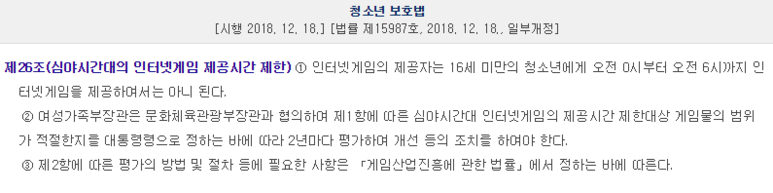 사실 이 셧다운제는, 게임 개발자나 게이머들의 입장에선 게임규제로 보여지지만, 사실은 청소년 규제에 좀 더 가깝다고 봅니다. 청소년들의 놀이문화 중 하나를 법적으로 못하도록 막는 것이거든요.
