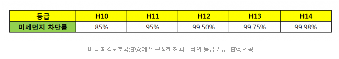 좋은 공기청정기에는 H11 등급 이사의 필터가 사용된다고 하네요. 자동차용 에어컨 필터에도 요즘은 헤파등급이 높은 필터가 선호된다고 합니다.