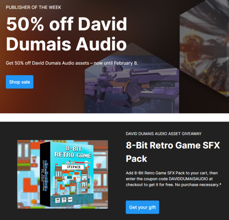 Publisher Sale – 50% off David Dumais Audio - Asset Store
