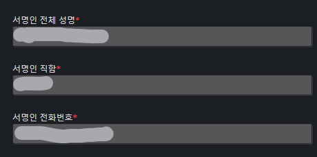 서명인 전화번호는 국가 번호부터. 번호 입력은 숫자와 공백, 아이픈 정도만 입력 가능.
